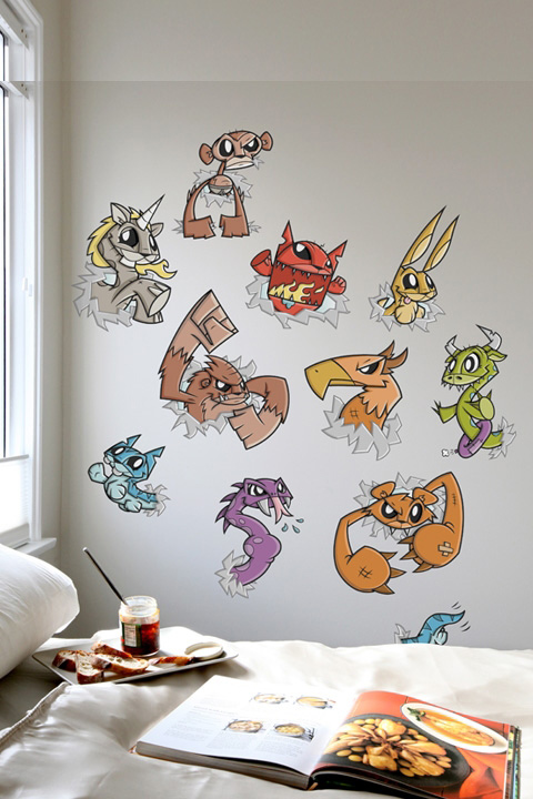 Plongez au coeur de son univers et retrouvez ses personnages cultes comme Mr. Bunny, Fire Cat, Ringo Bear, Smash ou encore Maximus, tous impatients de re-décorer vos murs!
